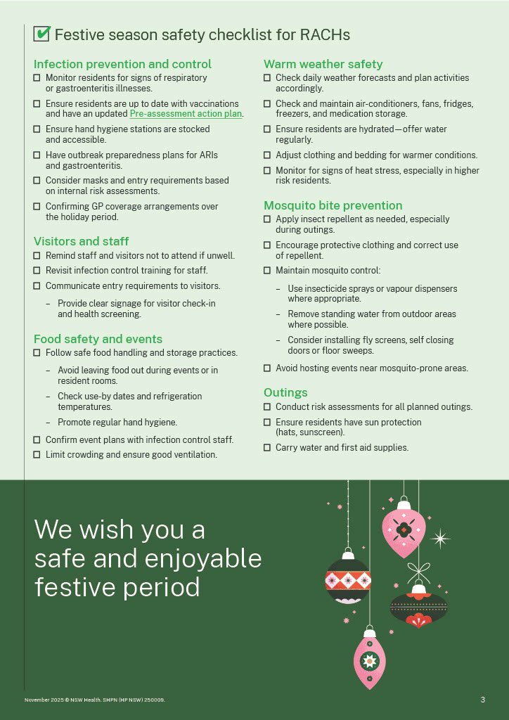 We are also excited to host our Annual Resident Christmas Party on Wednesday, 3 December 2025, featuring entertainment, a festive buffet lunch, and a range of Christmas activities. We look forward to celebrating this special day with you.